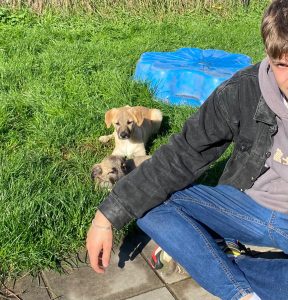 Benson en zijn nestgenootjes kwamen terecht in het staatsasiel in Roemenië – geen plek waar een jonge pup eigenlijk zou moeten opgroeien. Gelukkig werd ook hij daar weggehaald door onze partnerrescue en verbleef hij een tijdje veilig bij hen tot hij mocht vertrekken naar Nederland.