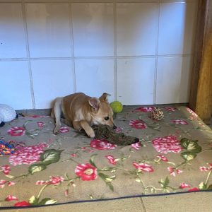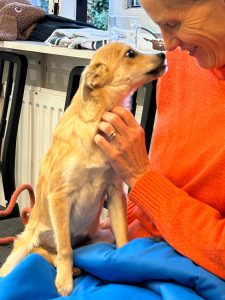 Bonnie vindt het heerlijk om te spelen en te ravotten met haar zusjes en de andere pups. Ze gaat vriendelijk en respectvol om met alle honden en is ontzettend blij wanneer er mensen bij haar komen, dan geniet ze zichtbaar van de aandacht en knuffels die ze krijgt. Nu dit meisje bij ons in de opvang in Nederland verblijft is er al veel meer tijd en aandacht voor haar, waar ze dan ook echt van kan genieten. Natuurlijk kan het nog veel mooier, namelijk een fijne plek bij mensen in huis.