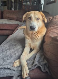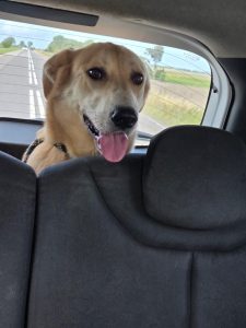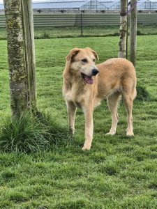 Fleur is een gesteriliseerd mix teefje met een geschatte geboortedatum van 10 oktober 2022 en een eindhoogte van circa 65 cm.