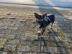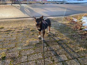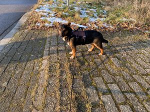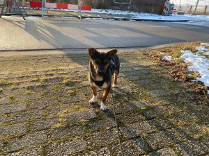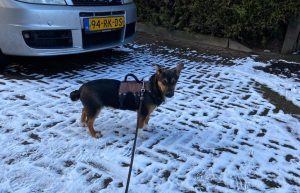 Gabriel is een aandoenlijk klein mannetje. Een kortpotig modelletje, een beetje teckelachtig, met een koppie waar je automatisch even naar kijkt. Hij is sociaal, grappig en zacht van karakter. Geen haantje-de-voorste, maar een rustig kereltje en als hij je nog niet kent dan kijkt hij heel even de kat uit de boom bij de kennismaking. Maar als hij je eenmaal kent dan zie je een hele blije, knuffelige pup, het is echt een schatje. We laten hem natuurlijk al kennismaken met de nieuwe dingen hier in Nederland, onder andere het wandelen aan de lijn en dat doet hij al goed.