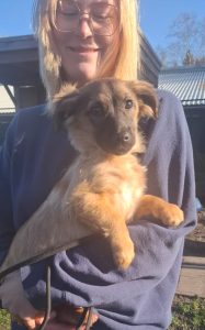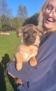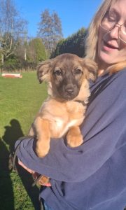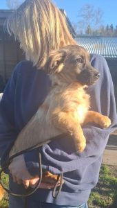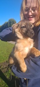 Pamela is één van deze pups en ze verblijft inmiddels bij ons in de opvang. Pamela is een ontzettend lief en schattig meisje met een innemend snuitje. Ze is aanhankelijk en zoekt graag de nabijheid van mensen. Het is aandoenlijk om haar grappige, speelse gedrag te zien, haar te zien ravotten en spelen. Ze is sociaal met andere honden, maar duidelijk dol op de vrijwilligers, die ze vrolijk kwispelend volgt. Pamela is een zacht, open pupje dat waarschijnlijk een aandoenlijk klein formaat zal behouden.