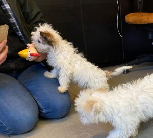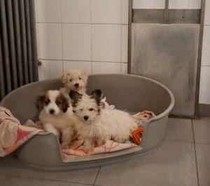 En hier bij ons in de opvang laat Pufina zien dat ze een sociaal meisje is en dat zij met de andere pups lekker aan het spelen, ravotten en luieren is.