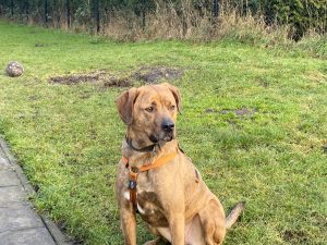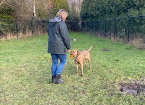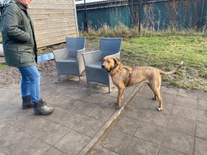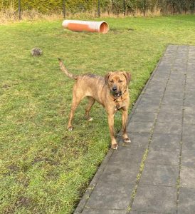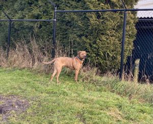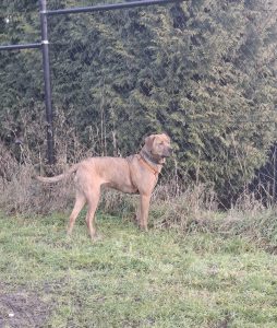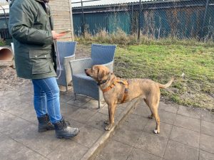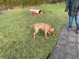 Een afgezet terrein met een 2 meter hoog hek is geen uitdaging voor haar om er overheen te klauteren, dat gaat heel soepeltjes.